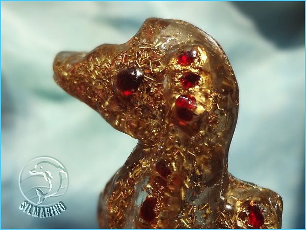 Zalité v pryskyřici podkládané pravým plátkovým zlatem neuvěřitelně září..nepřehlédnutelný šperk.