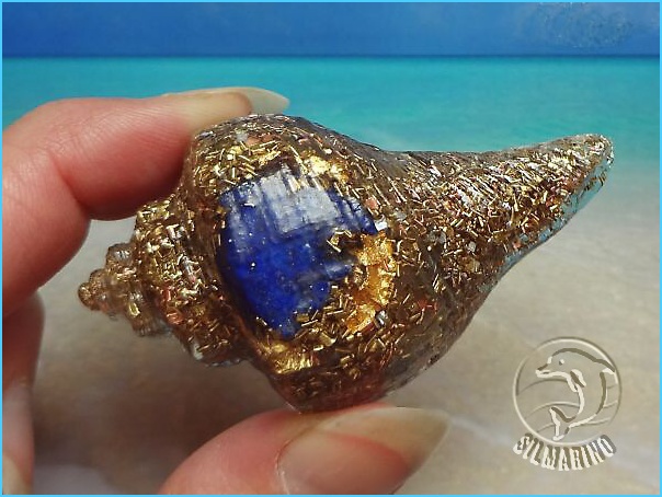 Na karibských plážích se nalézá veliké množství muší, mušliček, lastrur..tahle vznikla odlitím do formičky odlité z jedné skutečné, barvu a energii má díky úžasnému lapisu lazuli..