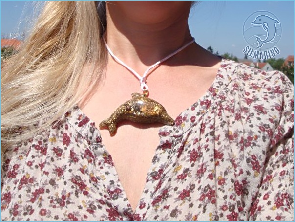Delfínek osobní růženín + zlato - jak může vypadat jako přívěšek na saténové šňůře