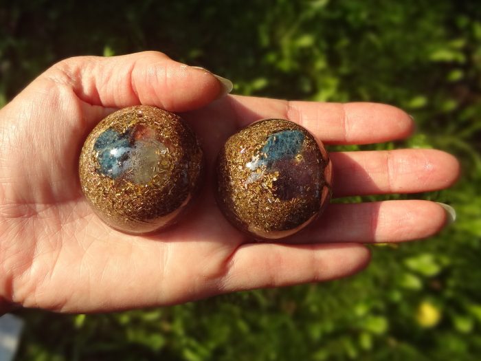 Malý orgonit ve tvaru puklíku - nízká polokoulička. Osobní talisman pro štěstí, harmonizaci lidské energie, čištění emocí, zlepšování nálady..jemně harmonizuje blízké okolí. Může také zlepšovat kvalitu vody, pokud bude umístěn blízko nádoby s pitnou vodou. Podporuje změnu vědomí a zvýšení fyzických a aurických vibrací. Jeho posláním je zejména: posilovat životní sílu, pomáhat při stavech nedostatku energie, únavy. Posiluje obecně kvality lásky a tolerance. Může být nápomocen nejvíce při stavech: deprese, beznaděje, poruch jater, srdce, sklíčenosti, uspěchanosti, problémech s chrupavkami končetin, povzbuzuje kladné sebehodnocení u žen a pročišťuje toxicitu obecně. Obsahuje krystaly přírodního křišťálu a uruquayského zvláště výrazně fialového ametystu a křišťálový písek. Šperkařská průzračná pryskyřice, piliny mědi a mosazi, hladký tvrdý lesklý povrch, okraje ručně zbroušené, spodní strana rovná, na dotek hřejivý, ideální jako dárek (info letáček přibalím).